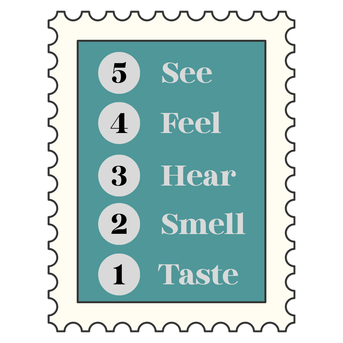 If you ever find yourself feeling anxious, overwhelmed, or overstimulated throughout the day, this sticker is perfect for you. This sticker features a cognitive grounding exercise to help bring you back to the present. Although a simple exercise, it keeps your cognitive mind active. For this grounding exercise, you will go down the list and identify 5 things around you that you can see, 4 things you can feel, 3 things you can hear, 2 things you can smell, and 1 thing you can taste. Whether you place this sticker on your phone, laptop, or notebook, it can act as a gentle reminder of this grounding exercise and help you Find Your Ground.