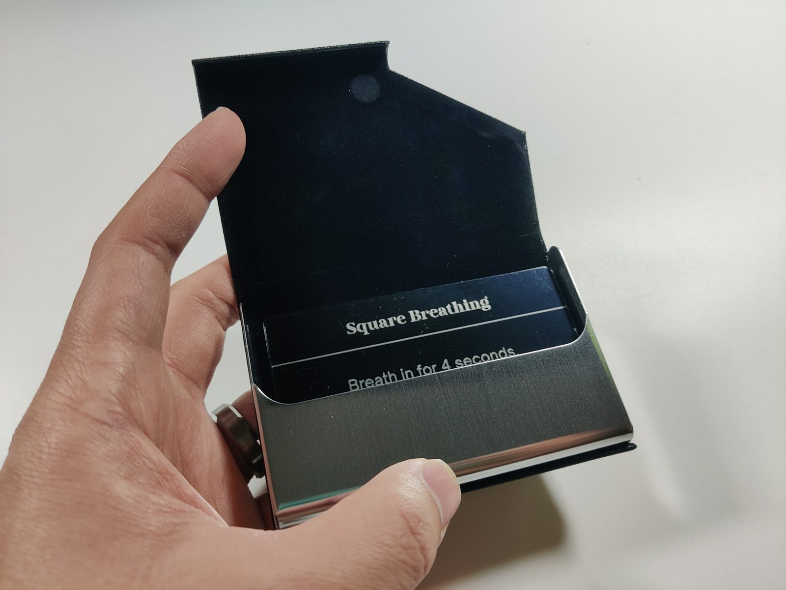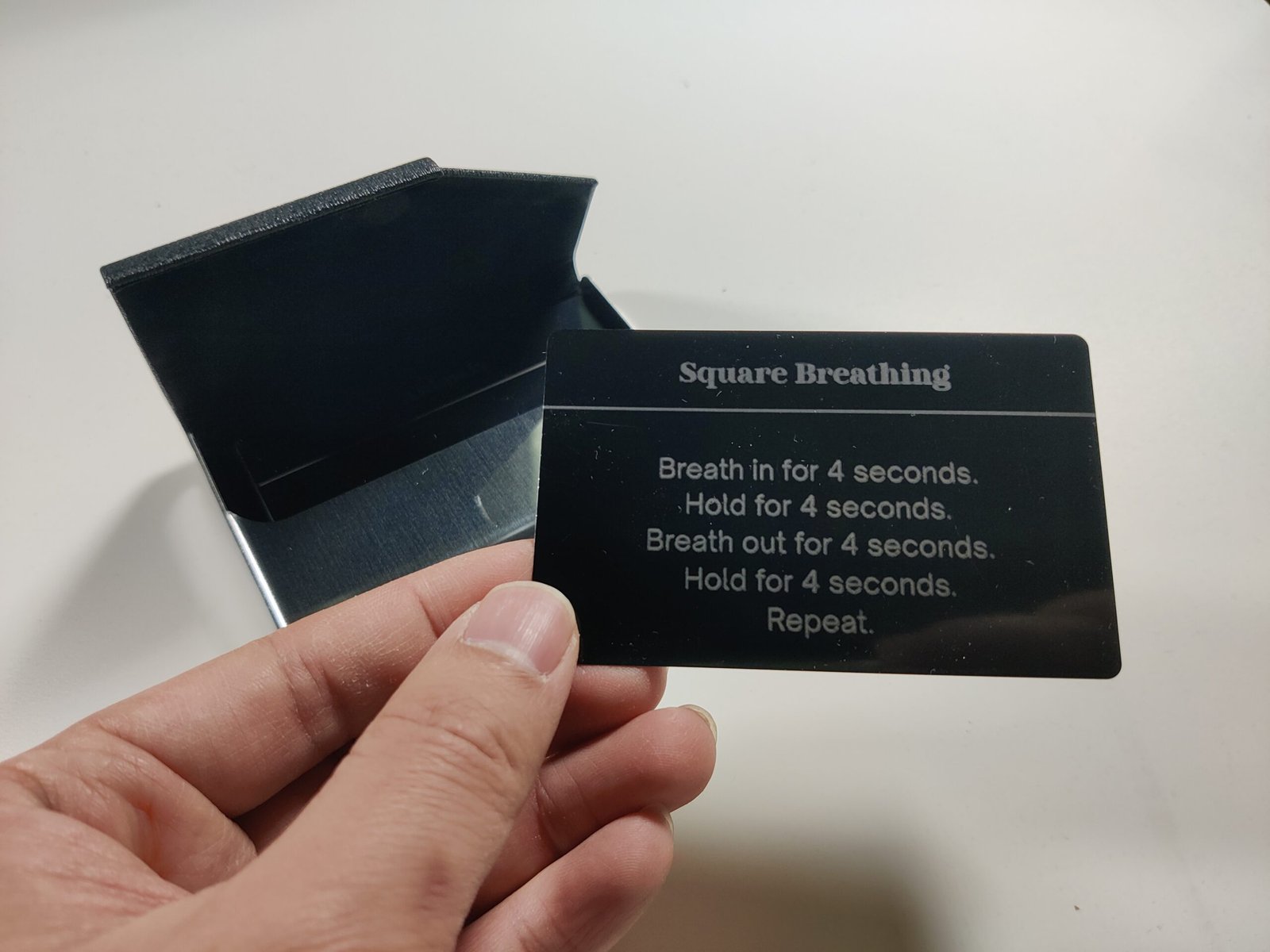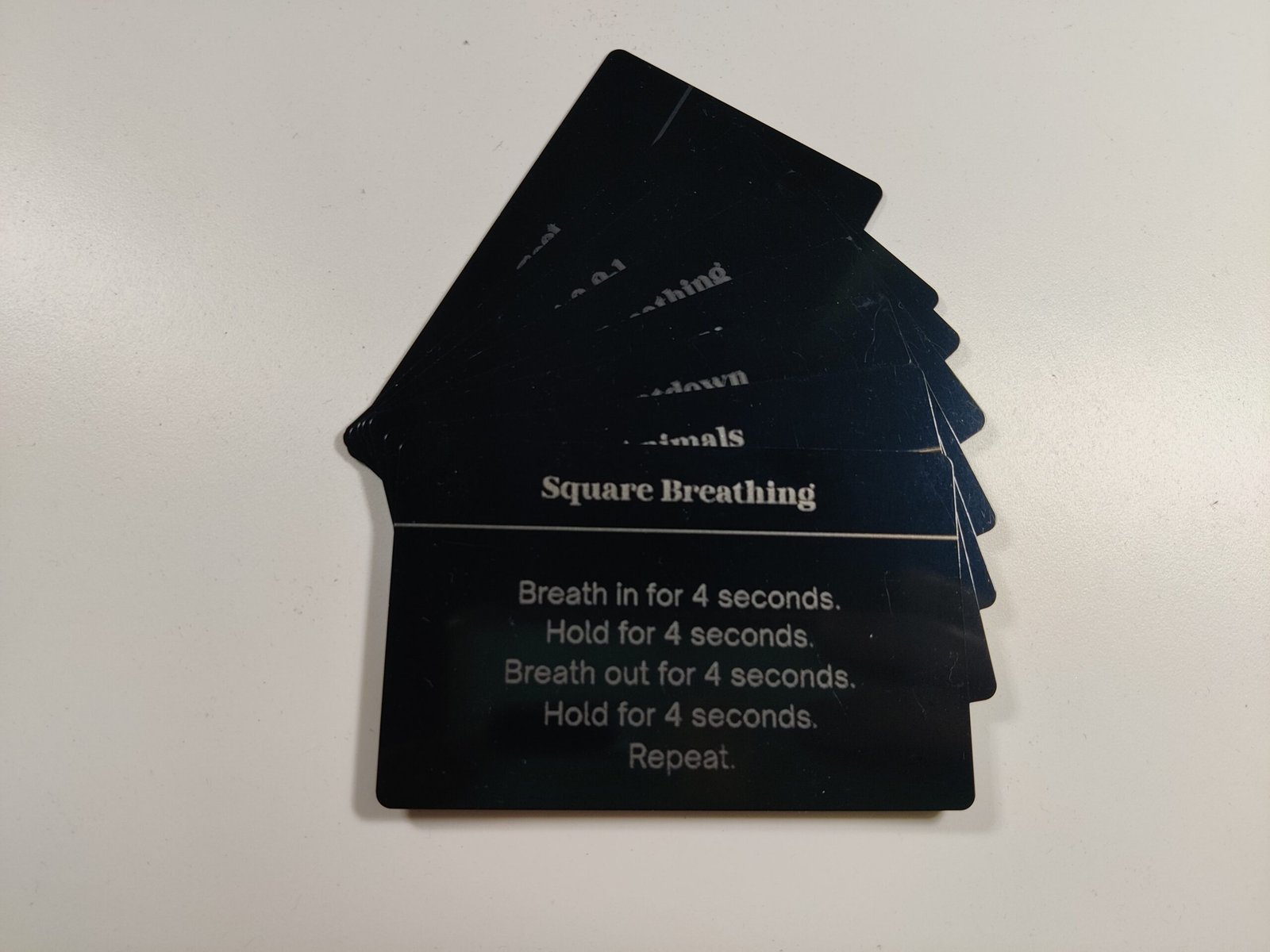 Each set of grounding cards includes a selection of 8 grounding exercises engraved on aluminum cards. Crafted from durable, lightweight aluminum, these grounding cards are built to withstand daily use. Unlike traditional paper cards, the aluminum ensures each card is waterproof, scratch-resistant, and easy to clean. The high-quality metal finish adds a sleek touch while prioritizing durability, making these cards perfect for anyone seeking a long-lasting mindfulness tool.